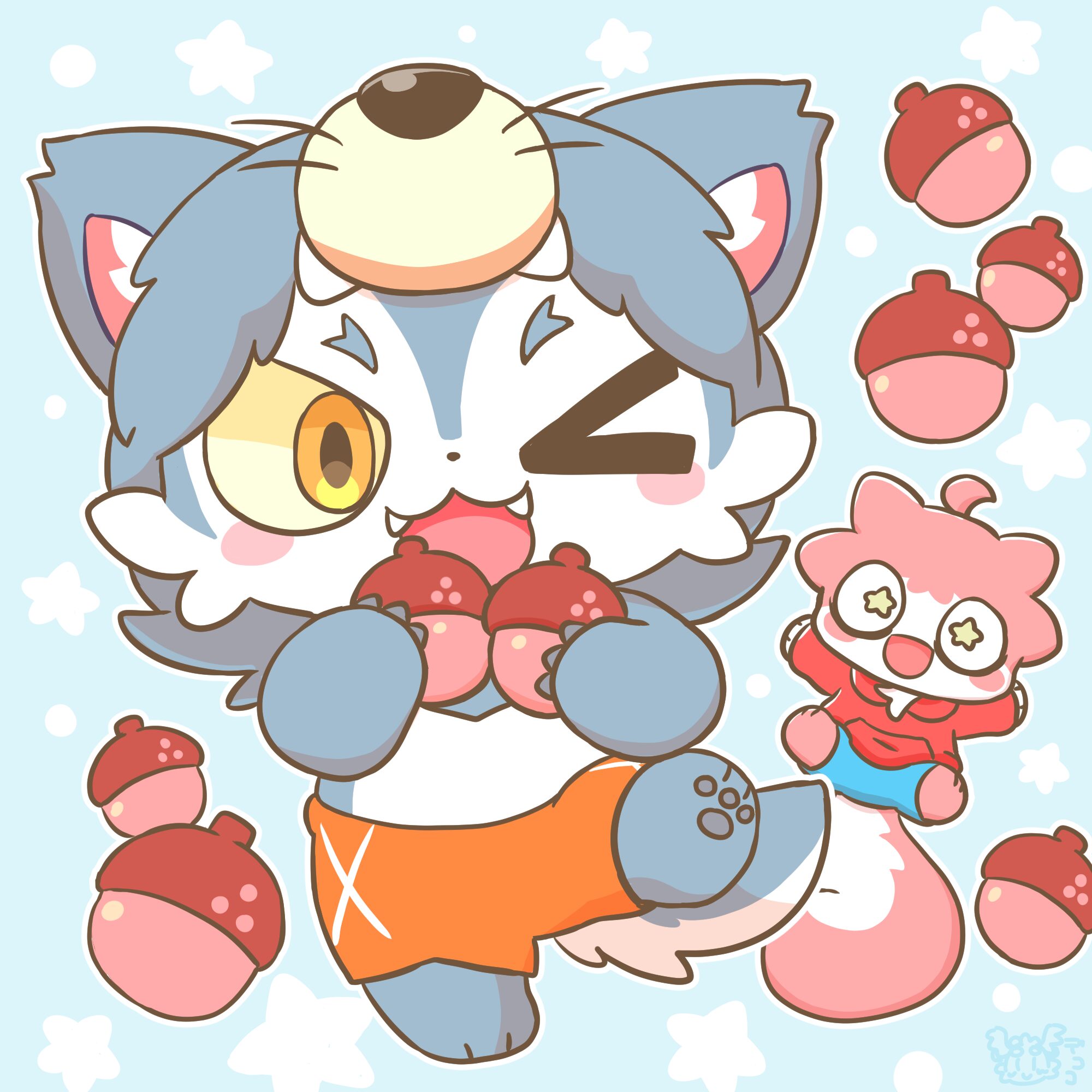 おおかみ少年くんがイチゴどんぐりを囲まれていて喜んでいるんだけど、その裏にいるアリスクくんはそれ以上に喜んでいるみたいで、目に星の印が浮き出てしまうほどだよ。「ちみっともうりょう」でおおかみ少年くんが大きな姿だった時に、アリスクくんのしっぽで酷い目に合ったことをまるで忘れているかのようだけど、アリスクくんからしたらそれは好都合だったよ。それどころか、おおかみ少年くんはイチゴどんぐりをアリスクくんが代わりに取ってきてくれたと解釈してくれたんだ。おかげで、おおかみ少年くんがアリスクくんのことをリス野郎呼びになるきっかけの嫌な出来事もきっとチャラになったね。