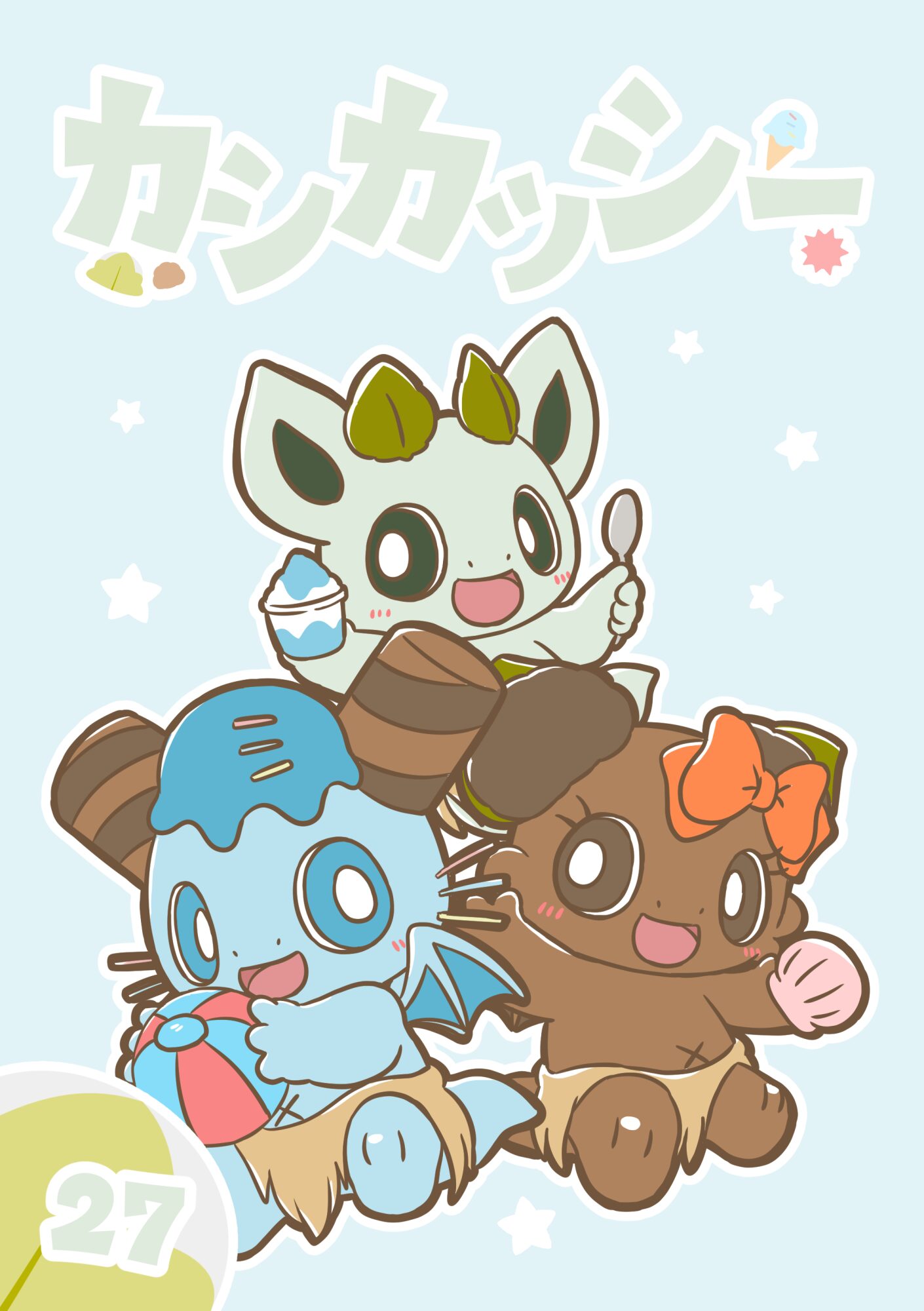 今まで描いたことがなかった、カッシーくんが生まれる前のミントくん達のお話や、新しい仲間であるバニラくんのお話、そしておまけ漫画の3つを収録しているよ。