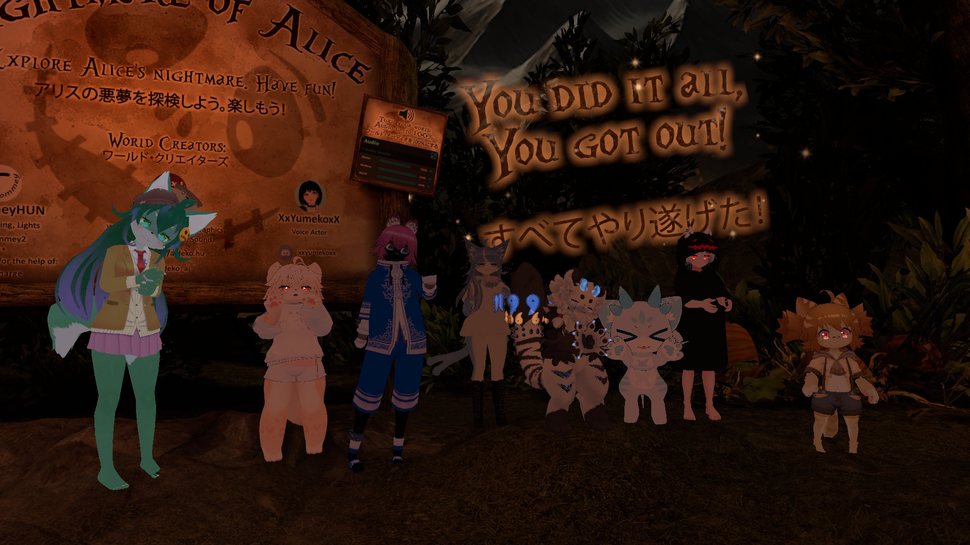 2023年12月11日はVRChatで友達とホラーワールド「Nightmare of Alice」に行って、洞窟の中の迷路にアイテム探しに謎解きと、数々のアリスの悪夢を体験してきたよ。ワールド内のグラフィックもキレイだし、ホラーワールドにある定番要素は全部詰め込まれているし、なかなか凝縮されていたよ。