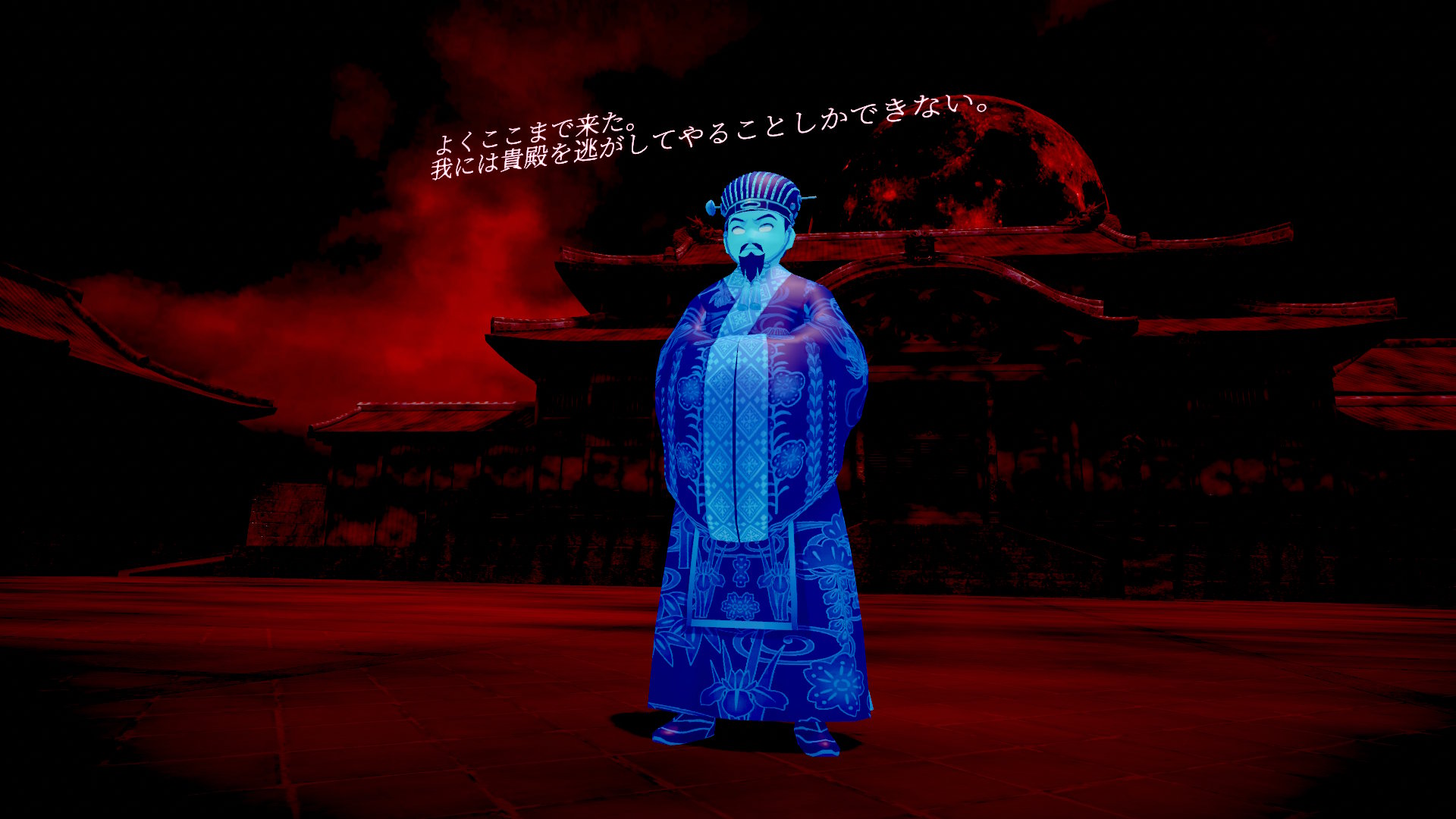 人数制限は8人で、びっくり演出は控えめ。プレイ時間は30分程度。時々びっくり演出があるよ。「深夜の首里城に近づくな、異界に連れ去られるから。」と、大きく警告が出たのにも関わらず、ついつい前に進んでしまうオレや友達。ホラーワールド慣れしている人からしたら、もはやそんな文は誘導でしかないからね。そりゃ進むしかないじゃない。