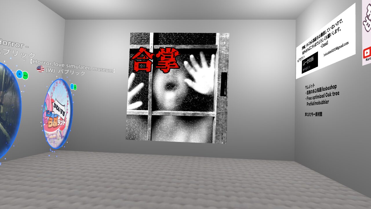2月24日はVRChatの友達とホラーワールド「合掌 – Horror –」に行ってきたよ。お部屋にあるお札を剥がす度に奇妙な現象が発生したり、謎の神社に飛ばされたりして怖い思いをしてきたよ。葬呪や闇病の作者さんと同じホラーワールドだね。