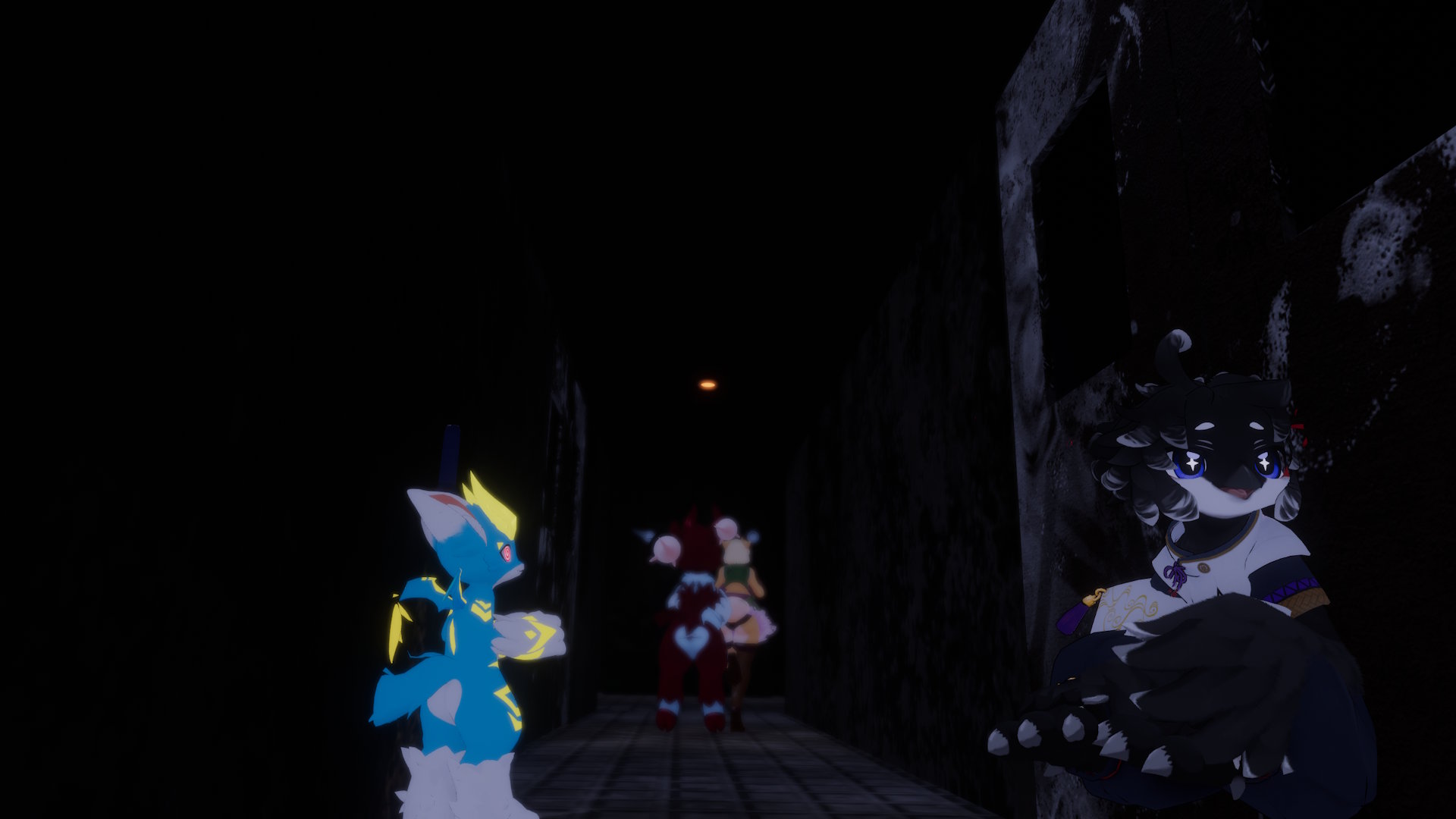 まず向かったのは「KILOBYTE HORRORーキロバイトホラーー」。このワールドに入れる最大人数は5人で、クリアにおよそ5分掛かったよ。このホラーワールドの売りは、何といっても390KBでできているということだよ。それにも関わらず、ちゃんとびっくり演出も用意されているし、最低限のP.T.系ホラーワールドとしての形を成しているし、ちゃんと楽しめるんだよ。そして軽いということはQuestやPico単機で動かしている人も快適に楽しめるということだし、とってもエコだよね。