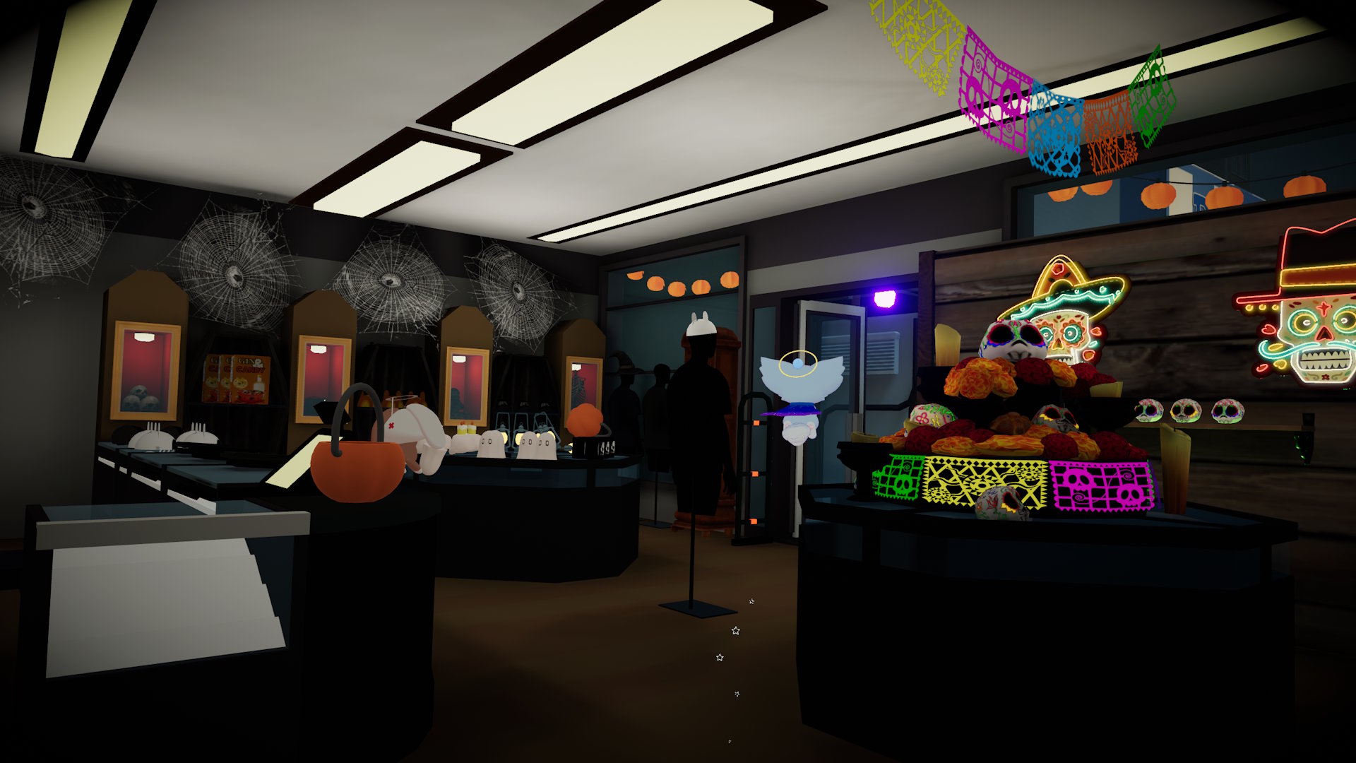 次は「RDG Fear Fest」だよ。このワールドに入れる最大人数は32人で、一通り回るのに1時間掛かったよ。ハロウィンの時期に合わせて公開されたホラー遊園地ワールドで、怖いアトラクションは当然のようにあれば、写真に映っているようなグッズコーナーやアイスが買えるコーナーもあるよ。おかげでホラーな写真は殆どなくて、みんなとアトラクションで楽しんでいる写真が中心になっているよ。