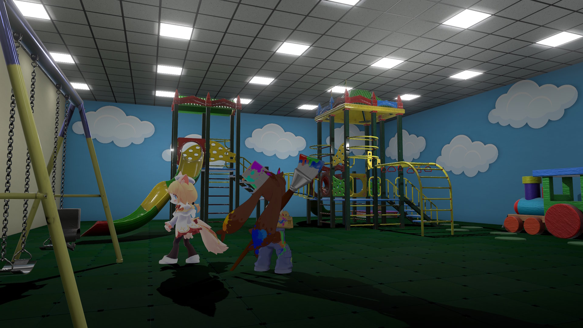 10月28日はVRChatの友達とホラーワールド「Playground」に行ってきたよ。誰もいない静かな屋内公園を探索したり、終盤で向かった公衆トイレでうっかり個室を開けてしまい、中にいた死神のような人にびっくり演出で怒られたりもしたよ。