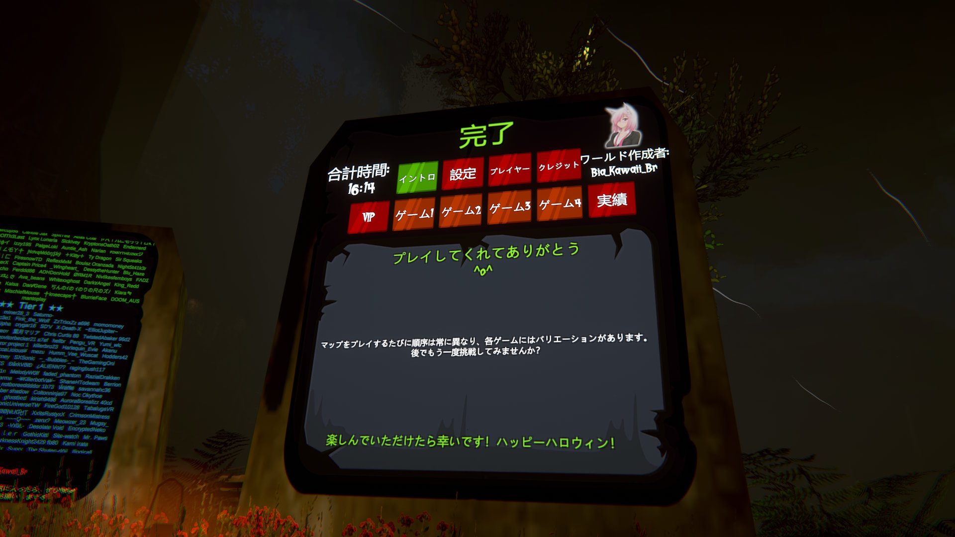 そしてゲームをプレイした後は、上に映っている写真のように、ワールドのシステム側の配慮でみんなが遊んでいるところの写真を撮ってくれているのが嬉しい。こういう機能があるとちょっと感動しちゃう。ありがとう。